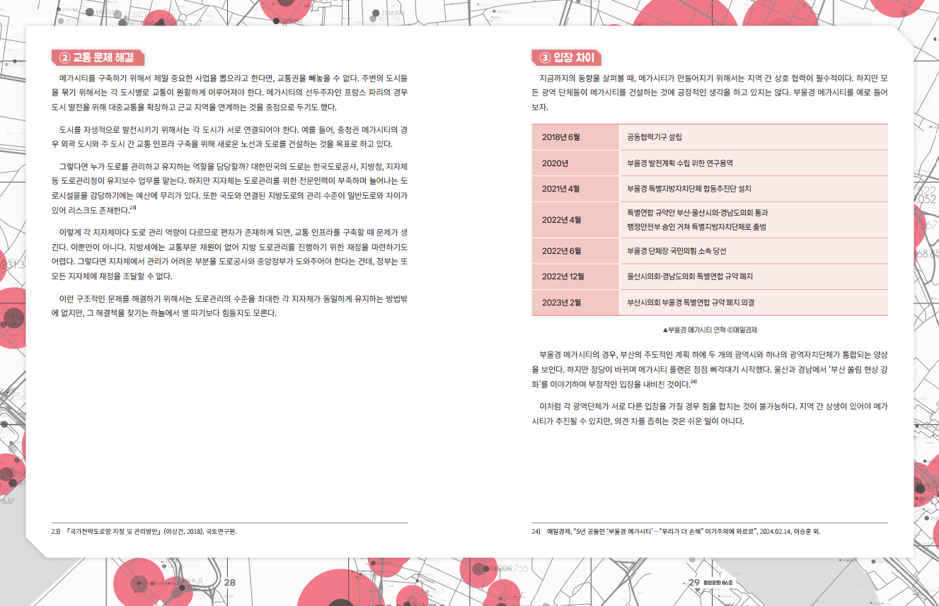 어쩌면 이 문제들은 현재 대한민국에서 완전히 해결할 수 없을지도 모른다. 하지만 조금씩 그 해결책을 찾아가다 보면 메가시티 플랜이 결코 허울뿐이 아님을 알 수 있다.