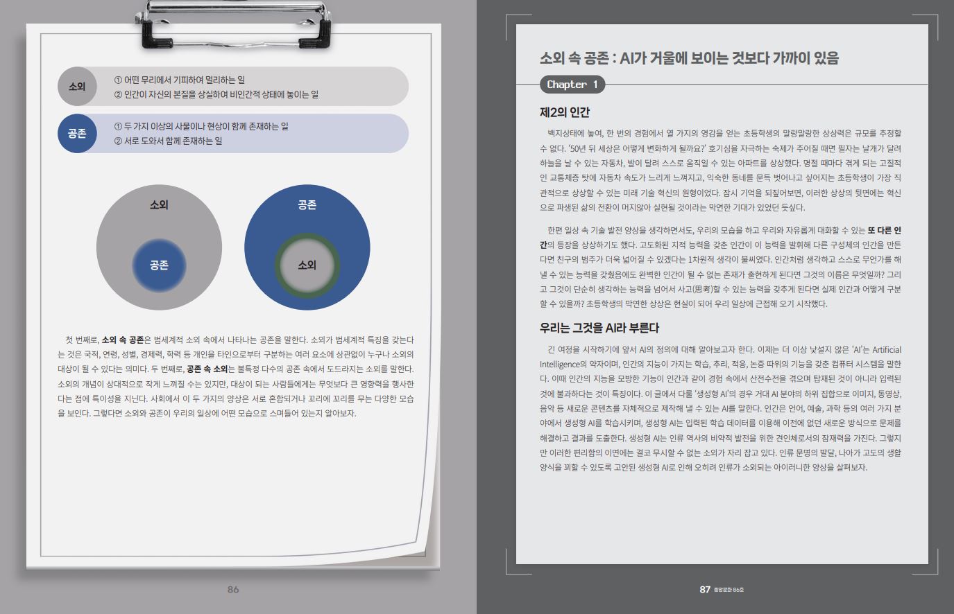 고도화된 디지털 시대에서 우리는 끝도 없이 쏟아지는 정보의 더미 속에 파묻힌다. 이 말은즉슨 정보를 식별하고 취사선택해 받아들이는 작업이 필요하다는 뜻이다. 식별 능력 덕분에 인간은 광범위한 정보의 늪에서도 지금껏 자신이 필요한 정보를 골라 습득하며 지적 성장을 이룰 수 있었다. 그러나 AI가 빠른 속도로 발전하면서 허위 콘텐츠가 무작위로 보급되고, 자신에게 주어진 정보가 참인지 거짓인지 구분하기 힘든 지경에 이르게 됐다. 소외의 두 번째 사전적 의미는 ‘인간이 자신의 본질을 상실하여 비인간적 상태에 놓이는 일’이다. AI로부터 파생된 부작용은 고유한 인간의 능력을 교란한다. 즉, 인간이 인간의 본질에서 기인한 능력을 온전히 실현하지 못하는 환경을 만든다.