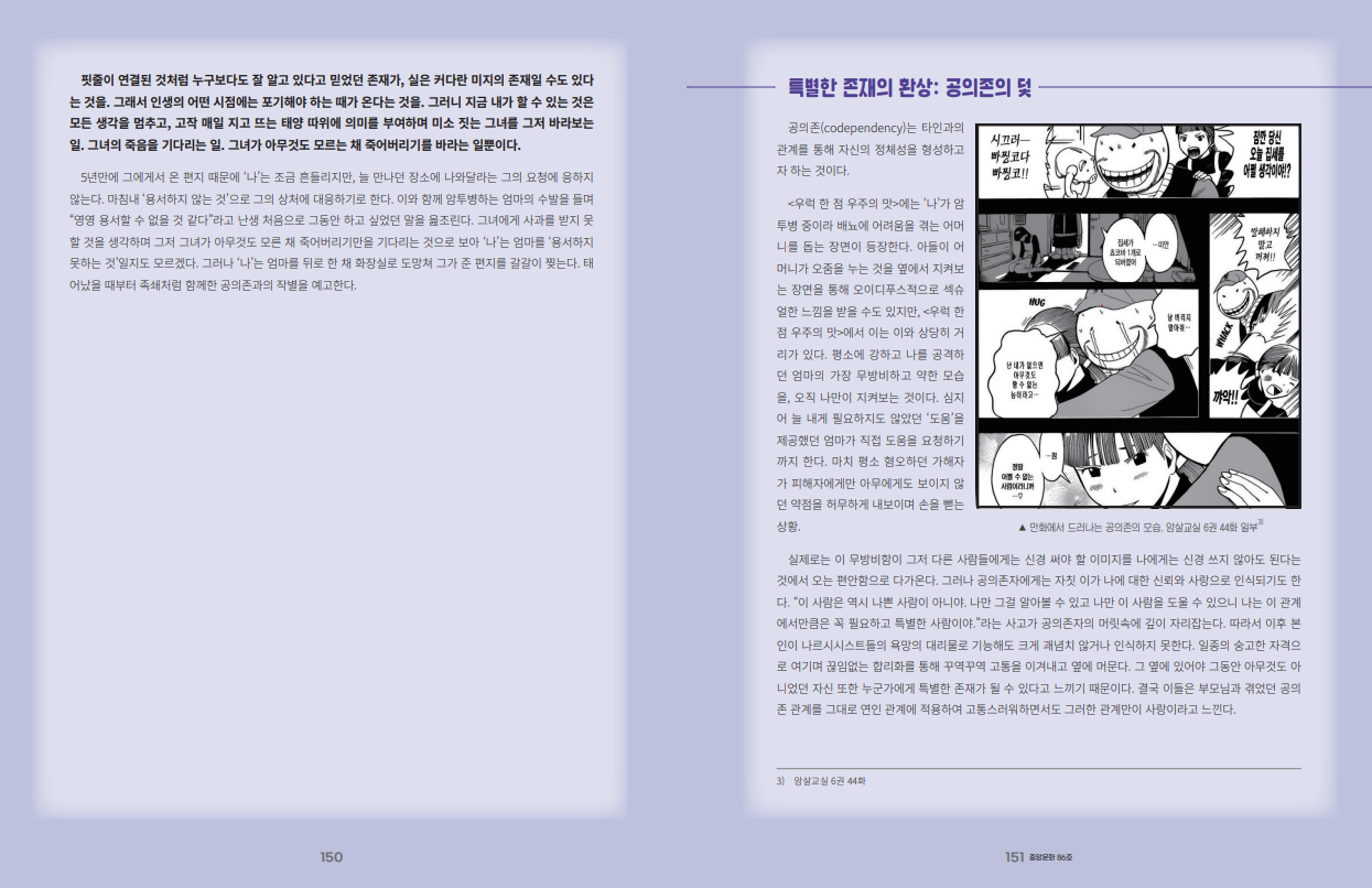 과연 이렇게 서로가 없으면 죽을 것 같아야, 필연적으로 이토록 심각한 고통을 유발해야만 ‘진짜 사랑’인 걸까? 왜 누군가는 이런 사랑에 빠지게 되는 걸까? 진짜 사랑의 탈을 쓴 ‘공의존’에 대해 <우럭 한 점 우주의 맛>를 통해 알아보자.