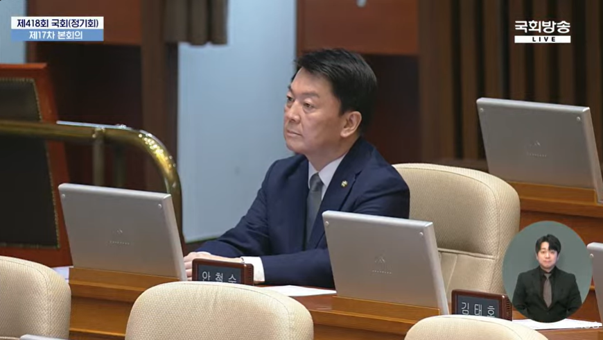 ▲국민의힘 의원 중 자리에 남은 안철수 의원  ⓒ국회방송