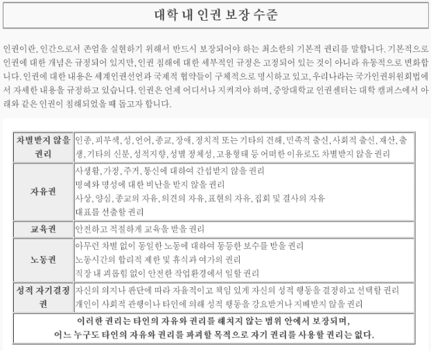 <중앙대학교 인권네트워크 구성 이유 요약>