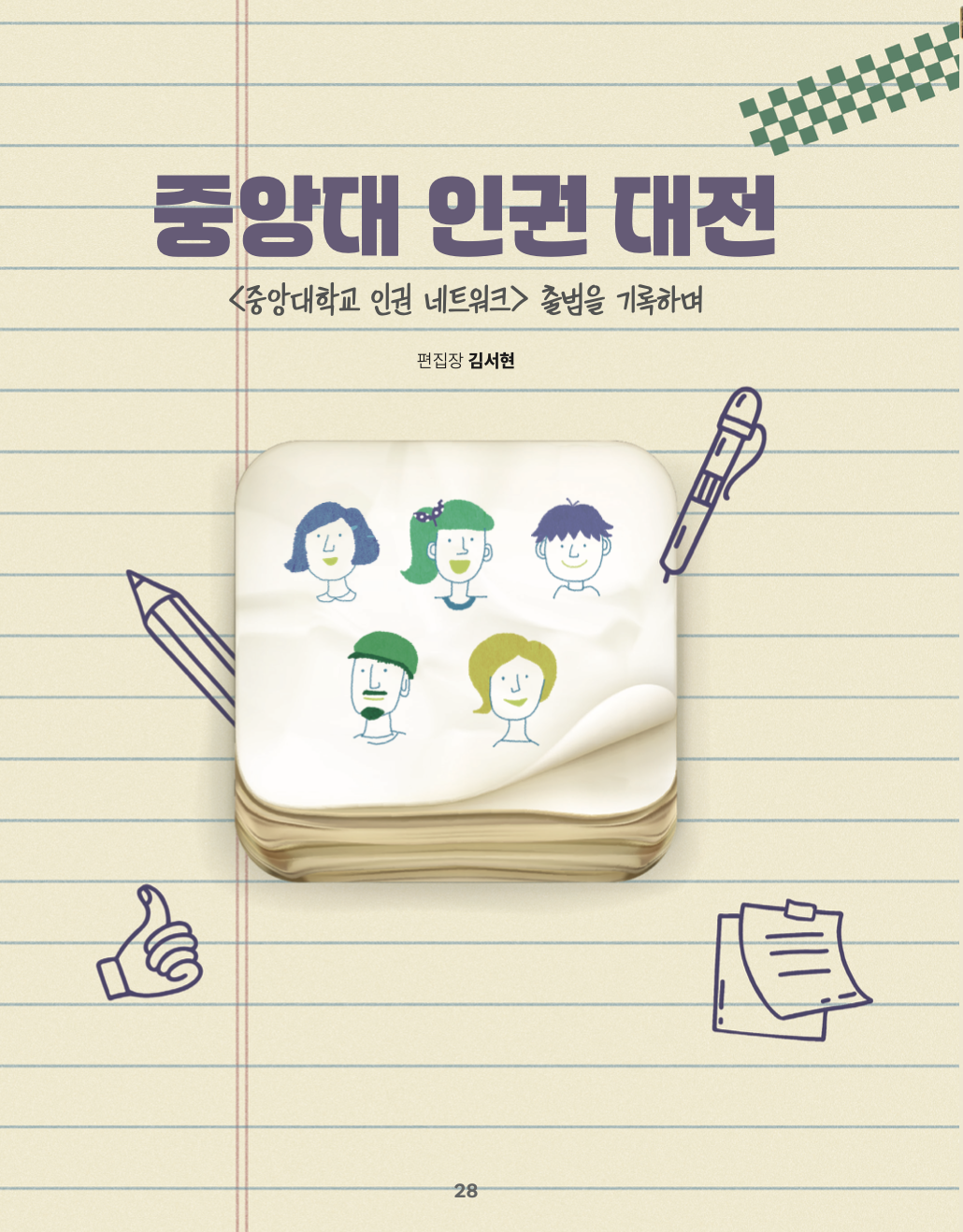 다안: 일단 저희는 모두 중앙대 단체들입니다. 사실 (직접적으로 단일한) 인권 문제를 다루지 않는 가맹단체들도 많아요. <포헤>도 사실 그렇고, <중앙문화>도 인권 교지라고 칭하지는 않는 것처럼요. 하지만 현시점에서는 인권이라는 키워드가 그래도 여러 단위체, 그리고 다양한 의견이나 방향성이 있는 개인들을 묶어내기에는 가장 중립적이고 여러 반발이 적은 키워드인 것 같다는 생각이 들었습니다. 그리고 단체와 개인이 연결되는 플랫폼의 역할을 하므로 네트워크라고 이름 붙였습니다.