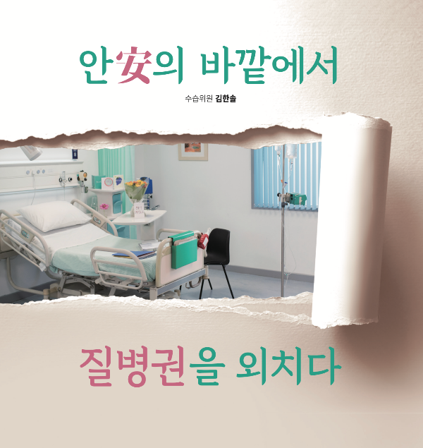 해당 도서에는 ‘아픈 몸’, ‘질병권' 그리고 ‘질병의 개인화'라는 용어가 등장한다. 우선 아픈 몸이라는 용어는 ‘신체의 문제에 국한되지 않고, 의학적으로 진단될 수 있는 장애보다 포괄적으로 만성적으로 아픈 몸, 건강을 완전히 회복하기 어려운 몸’을 지칭한다. 건강권이라는 단어는 친숙하게 다가오는 반면 질병권은 다소 생소하게 들릴지도 모른다. WHO 헌장에는 도달 가능한 최고 수준의 건강에 대한 권리(건강권)가 반영되어 있다. 이는 국제 인권법상으로 건강권의 향유를 최대한 보장하기 위한 규범, 제도, 법규, 가능한 환경 등의 사회적 장치들을 요구할 수 있는 권리로 이어진다.9 질병권은 건강권을 아픈 몸의 시선에서 재해석하고 재규정한 새로운 단어로, 이러한 논의를 아픈 몸들에게까지 확장하고자 하는 시도다. 질병권 운동에서는 건강권이 건강을 도달하고자 하는 목표로 삼을 때, 질병을 겪는 시간은 서둘러 극복해야 하는 임시적 상태로 받아들여지는 문제에 주목한다. 즉, 질병권은 건강 담론의 초점을 아픈 몸으로 옮겨, 질병을 온전히 겪을 수 있도록 시간과 환경을 보장받을 수 있는 권리10를 말한다.