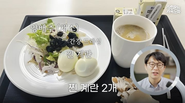 ▲ 저속노화 아침식사의 예시(출처: 유튜브 채널 ‘정희원의 저속노화’) 1