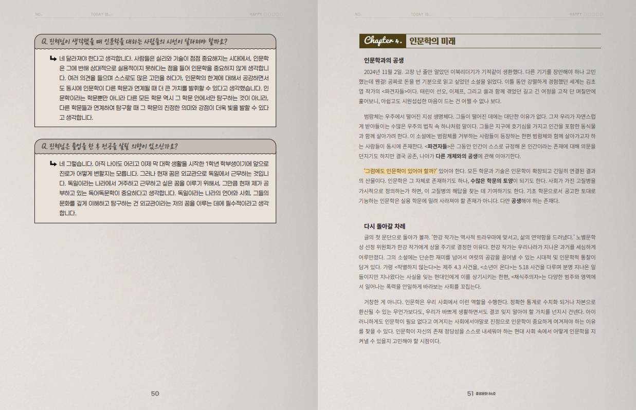Q. 진혁님이 생각했을 때 인문학을 대하는 사람들의 시선이 달라져야 할까요?