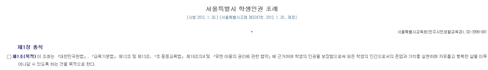 ▲ 서울특별시 학생인권조례의 제1장 총칙 설명