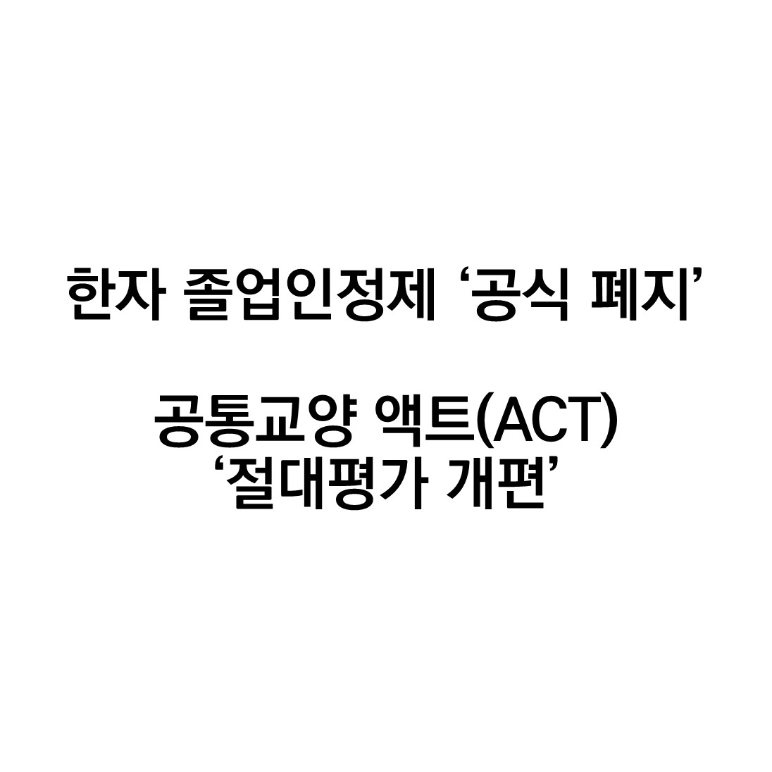 [속보] 한자 능력 졸업 인정제 폐지 및 액트(ACT) 절대평가 개편
