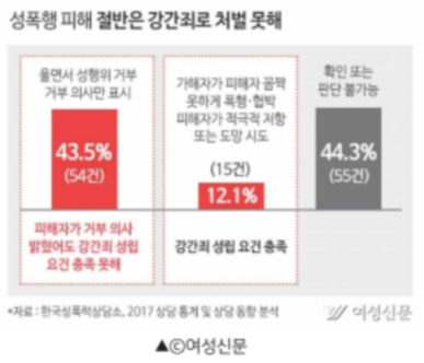 한국의 법률로는 성폭력 범죄를 처벌하는 데에 한계가 있다. 강간죄의 성립 요건을 매우 좁게 해석하는 ‘최협의(最狹義)설’ 때문이다. 형법 제297조, 제298조에 따라 강간죄와 유사강간죄로 인정받으려면 ‘피해자의 반항이 불가능하거나 현저히 곤란할 정도에 이르는’ 폭행 또는 협박이 존재해야만 한다. 2 결국 한국의 형법은 개인의 성적 자기결정권을 좁은 범위에서만 보장한다. 따라서 성폭력 사건의 피의자가 증거불충분 등으로 혐의가 없다고 밝혀졌다고 해도 그의 행동은 충분히 문제가 있을 수 있다. 그렇기 때문에 법적 결과와는 별개로 학내단체 차원에서 피의자에게 징계를 내림으로써 법적 한계를 보완할 수 있다.