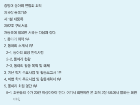 두 동아리 모두 중앙대학교 동연에 소속돼 있다. 동연 회칙에 따르면 동아리 구성은 많은 요건을 충족해야 한다. 동아리를 구성하기 위해서는 동아리의 회칙, 대표자 그리고 구성원이 필요하다. 또한 동아리는 활동 목적을 가지고 있어야 한다. 즉, 동아리는 체계적으로 운영되는 공동체여야 한다.