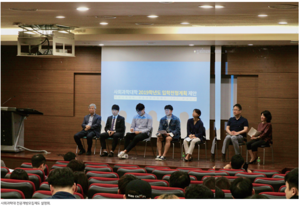 학교본부는 4월 4일 전공개방모집제도 설명회에서 학생들에게 대학 진학 후 진로 모색의 기회를 주기 위해 전공개방모집제도를 시행할 것이라고 밝혔다. 학교본부의 갑작스러운 전공개방모집제도 시행 발표는 학생 사회로부터 비판을 받았다.