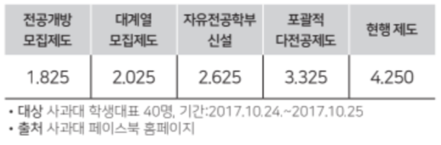 학교본부는 4월 4일 전공개방모집제도 설명회에서 학생들에게 대학 진학 후 진로 모색의 기회를 주기 위해 전공개방모집제도를 시행할 것이라고 밝혔다. 학교본부의 갑작스러운 전공개방모집제도 시행 발표는 학생 사회로부터 비판을 받았다.