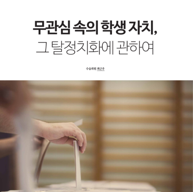 지금의 현실에서 학생들이 탈정치화에 대해 명확한 문제의식을 느끼기란 쉽지 않다. 취업난은 학생들을 더욱 압박하는 한편, 학생 기구는 점점 제 기능을 잃어가고 있다. 그래서 우리는 자연스럽게 정치화라는 것에서부터 멀어져 간다. 하지만, 정치적인 것에 거부감을 가지는 모습처럼 정치혐오는 스스로 강화되는 지점도 있다. 학내가 탈정치화됨에 따라 중요한 정치적 사안은 묻히기 쉽다. 학생 기구는 찬반이 갈리는, 명확한 답이 보이지 않는 문제에 관해선 결정을 유보할 수밖에 없다. 학생 기구는 학생의 의견을 모으고 이를 대변하는 기관에서, 학생들에게 서비스를 제공하는 ‘중립적’인 기관이 되어버렸다. 결국, 탈정치화는 학생 기구의 역할을 축소 시키는 동시에 학생 사회를 정치적 담론으로부터 소외시킨다.