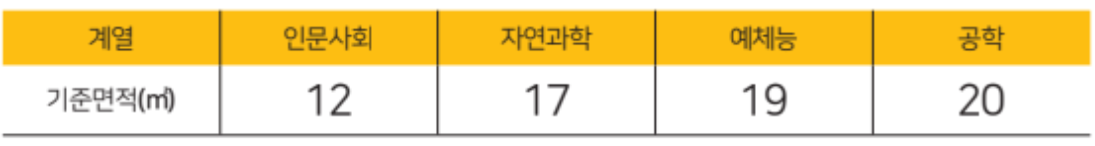 한편 각 계열별 필요 교사면적이 다르기 때문에 어떤 학문단위를 조정하는지에 따라서 이동 정원이 달라진다. 대학설립 운영 규정에 따르면 계열별 학생 1인당 교사면적 기준은 아래 표와 같다.