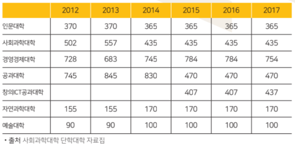 수혜자 부담의 원칙을 적용했을 경우 인원이 가장 많이 증가한 공학대학이 가장 많은 인원감축의 대상이 되는 것이다.