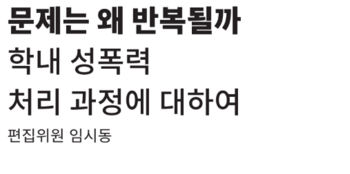 나아가 성폭력의 근본 원인이 공동체의 성차별적 문화는 아니었는지 공동체는 반성의 시간을 가져야 한다. 다시는 이런 일이 발생하지 않도록 재발방지책도 마련할 필요가 있다. 구성원의 인권을 효과적으로 보호하고 공동체의 자정 노력을 이끌 수 있는 것은 사법부보다는 학교다.