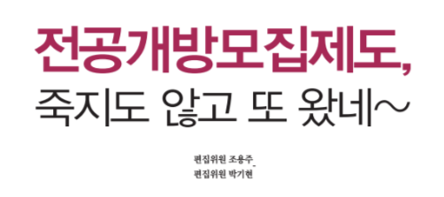 - 전공개방모집인원을 10%로 줄이는 안이다. 19학년도에는 받아들여지지 않았지만 2020학년도부터는 받아들여진다. [본문으로]