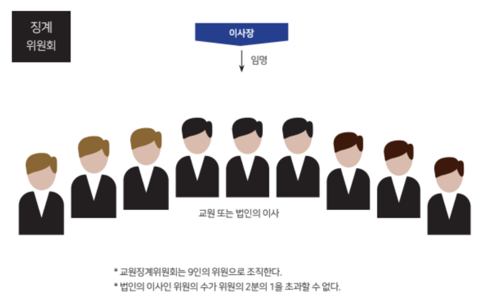 우선, 학교 정관 중 징계위원회의 구성 조항을 구체화해야 한다. 현재 학교 정관은 징계위원회의 위원이 되기 위한 자격요건으로 ‘교원과 이사’만을 요구하고 있다. 위원으로서의 능력, 대표성 등에 관한 자격요건은 전혀 요구하지 않고 있다. 위원이 공정한 판결을 내릴 수 있다고 여겨질 만한 기준이 포함된 조항, 위원회의 대표성과 타당성을 높이는 조항이 신설되어야 한다. 그렇게 할 경우, 위원의 임명권을 독점하고 있는 이사장의 권한을 제도를 통해 조금이라도 견제할 수 있다.