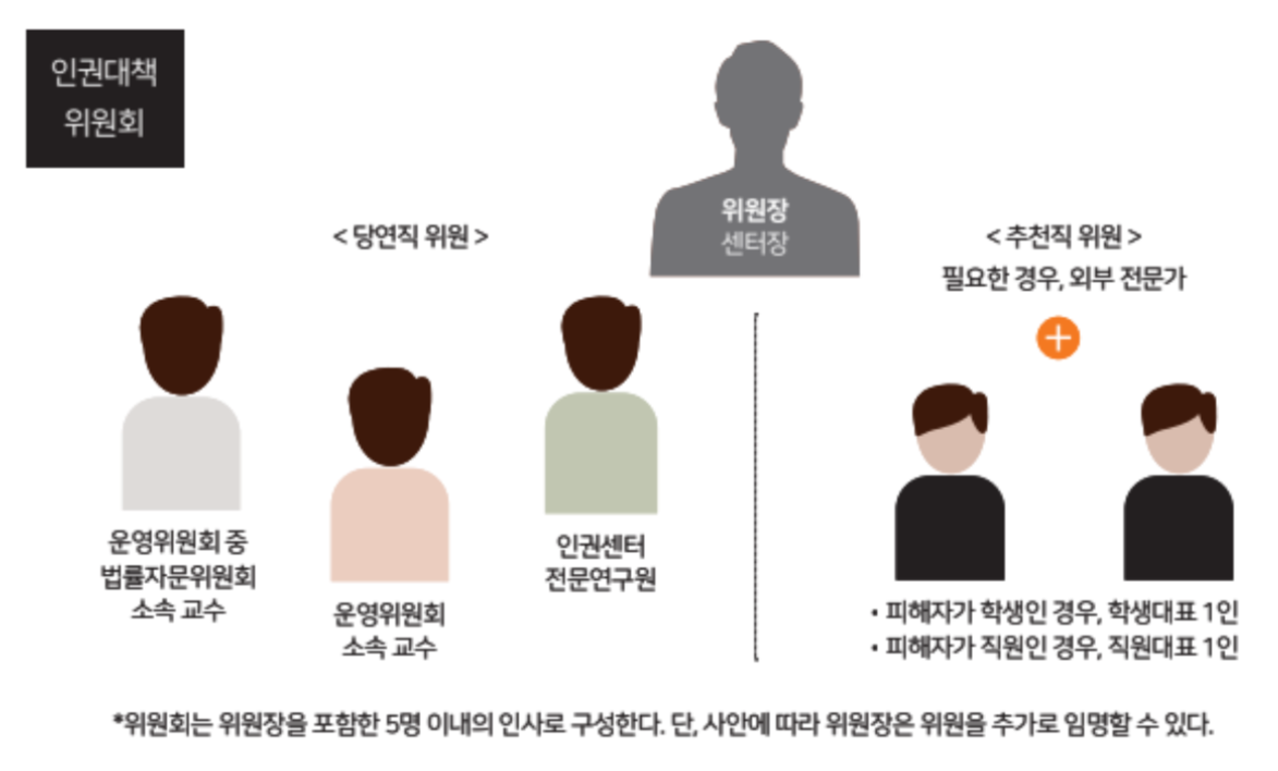 - <인권센터운영시행세칙 1장 3절 13조 2항>, <학교법인중앙대학교정관전문 6장 3관 2절 64조 5항>/ [본문으로]