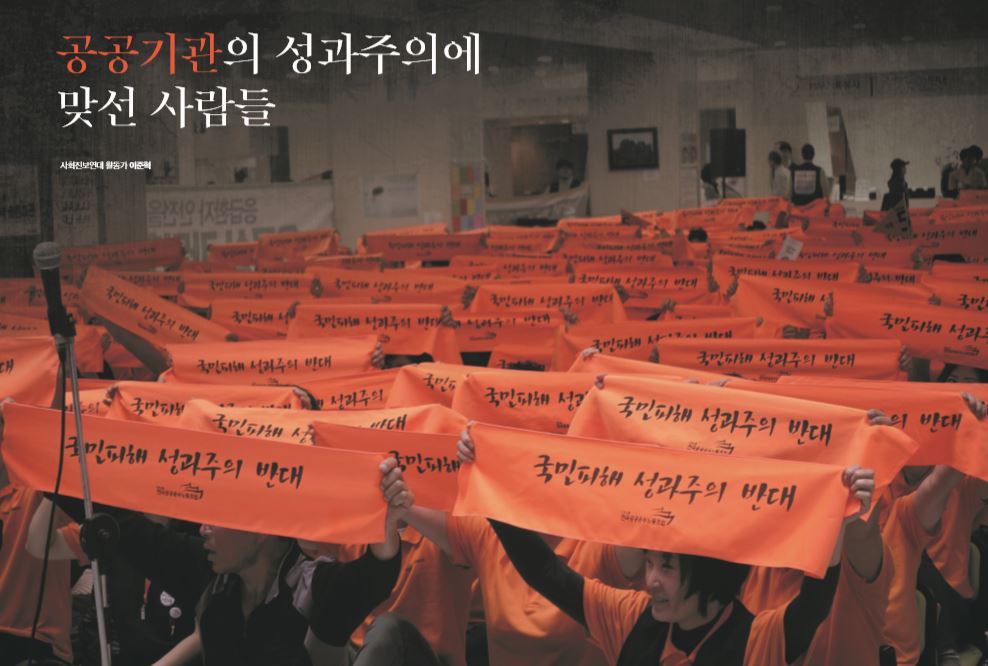 다행히 그 ‘누군가’들이 나섰다. 공공서비스를 제공하는 당사자, 노동자들이었다. 민주노총 공공운수노조는 산하의 철도, 지하철, 병원, 가스, 건강보험, 국민연금 등의 사업장과 함께 9 월 27일을 시작으로 대규모 파업에 들어갔다. 그들의 요구는 성과연봉제와 저성과자퇴출제를 묶은 ‘성과퇴출제 반대’였다.