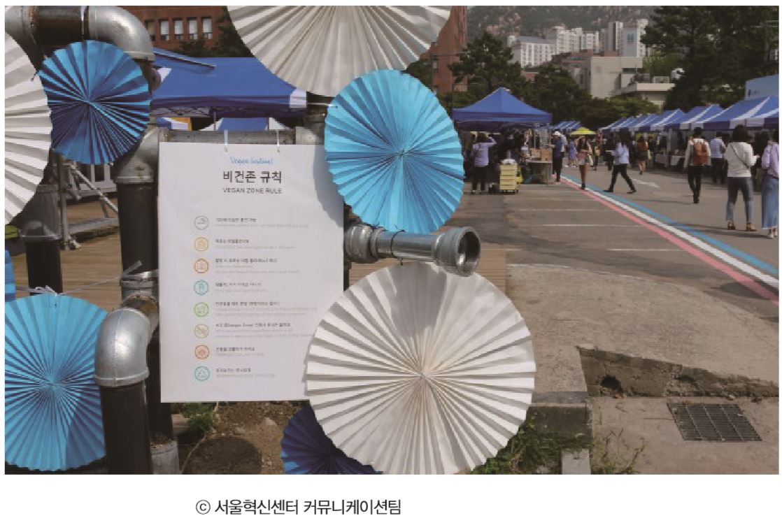 쏘이: 기존의 사회운동 방식은 시위 같은 남성적인 방식밖에 없었잖아요. 채식을 전파하되, 사람들이 재밌게 놀러, 친구 사귀러 자연스럽게 참여할 수 있는 행사가 뭐가 있을까 고민하다가 페스티벌이라는 방식을 택했어요.