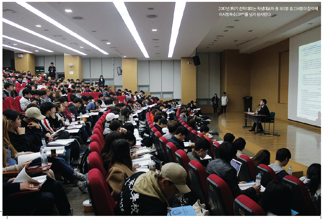 총학생회는 학생총회를 통해 학생사회의 가장 민주적이고도 실천적인 장을 구축해야 한다. 과거처럼 중간고사 일정이나 복지사업을 논하는, 거창하지 않은 자리여도 좋다. 요는 전 학우의 실질적인 학생자치 참여 경험을 바탕으로 진정한 학내 민주주의를 실현해 나가고, 건전한 비판의 공론장을 형성하는 것이다. 학생들이 한 번도 실질적인 결정권을 쥔 적이 없는 구조조정과 재정 지원 사업, 이제는 최고 의결기구인 학생총회에 모여 학생들의 손으로 직접 결정할 때다.
