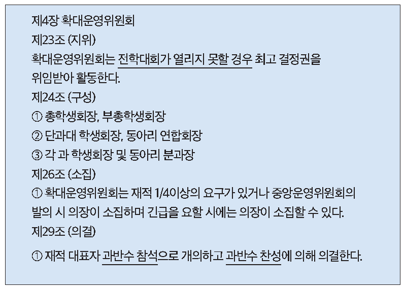 - 전학대회는 대표자가 아닌 학생들의 참가는 가능하나, 의결권과 발언권이 없다. [본문으로]