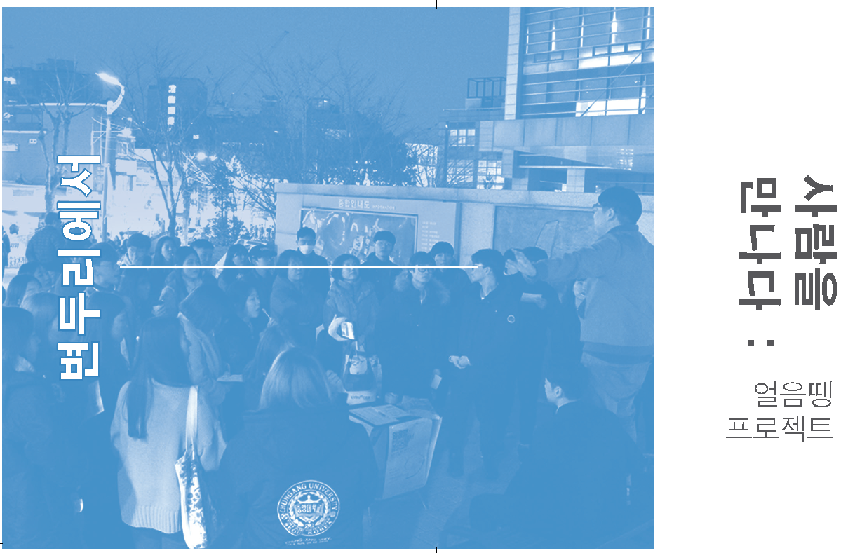 조윤경: 우선 프로젝트 이름을 너무 무겁게 하지 말자는 취지에서 구성원들과 함께 다양한 놀이의 이름들을 제목 후보로 뽑았어요. 그중에서도 얼음땡이 겨울에서 봄으로 넘어가는 계절적 의미도 담고 있고, 얼음을 깬다는 상징적 의미도 좋아서 얼음땡으로 선정하게 되었어요.