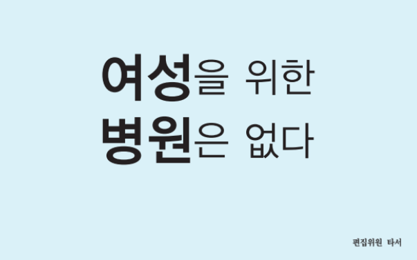 산부인과에서조차 여성주의적인 관점이 사라진다면 여성은 어디에서 온전히 설 수 있을까. 남성주의적인 의료계에 여성과 약자의 목소리를 담을 수 있어야 한다. 그 시작은 산부인과가 되어야 한다. 다른 어떤 병원보다 여성의 시각이 필요한 곳이기 때문이다. 산부인과가 환자에게서 가부장적인 이데올로기를 벗겨내는 곳이 되었으면 한다.